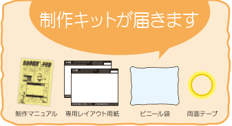 「専用レイアウト用紙」に、写真や手書き文字を切り貼りする作り方です。
